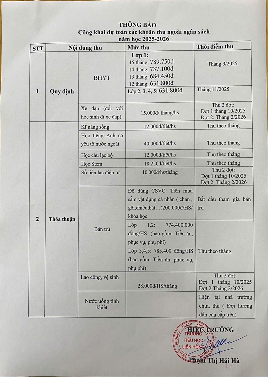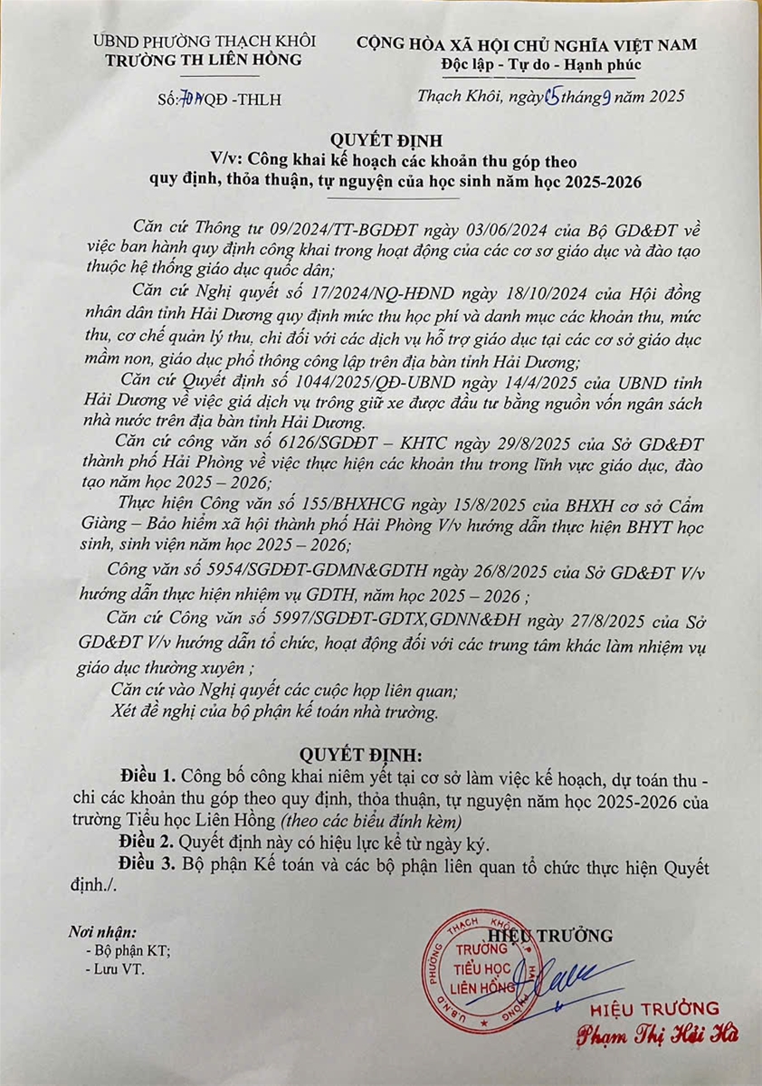 Công khai kế hoạch các khoản thu góp theo quy định, thỏa thuận, tự nguyện của học sinh năm học 2024-2025 ...